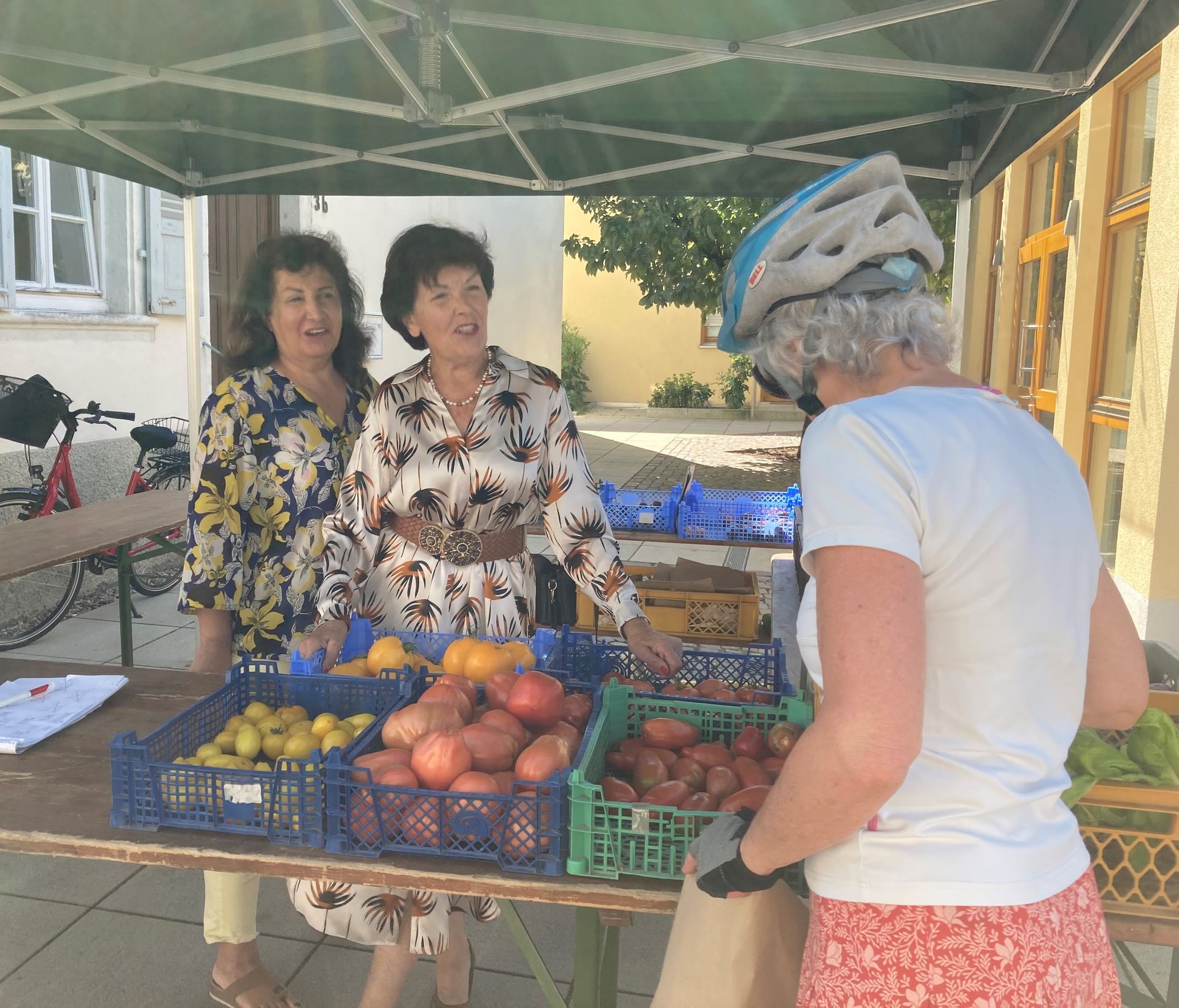 Vorige Woche ging die Saison für den Marktstand vom Talhof zu Ende, in diesem Jahr gab es einen neuen Standort in der Kirchstraße vor dem evangelischen Gemeindehaus. Dort verkauften auch wieder einige Mitglieder des Arbeitskreises Schriesheimer Senioren (ASS) ehrenamtlich fast jeden Freitag von 9 bis 13 Uhr die frischen Produkte der Talhof-Gärtnerei. Als Marktverkäufer reizt jedoch nicht nur der Verkauf selbst, sondern man freut sich auch über den Kontakt mit Käufern und Vorübergehenden. Auf diese Weise gab es oft die Gelegenheit, interessante Gespräche zu führen oder die Aktivitäten unseres Vereins vorzustellen. Zum Angebot der Talhof-Gärtnerei gehörten in dieser Saison wieder die verschiedensten Salate, Gurken, Zucchini, Paprika, Bohnen, Kartoffeln, Kräuter oder auch Blumen. Außerdem gab es oft frische Eier zu kaufen. Besonders in den letzten Wochen wurde dann eine große Auswahl an diversen Tomatensorten angeboten, die gern und viel gekauft wurden. Der letzte diesjährige Verkauf in der Innenstadt hat am vergangenen Freitag stattgefunden, in den nächsten Monaten kann man dann wieder direkt beim Talhof in der Talstraße einkaufen.