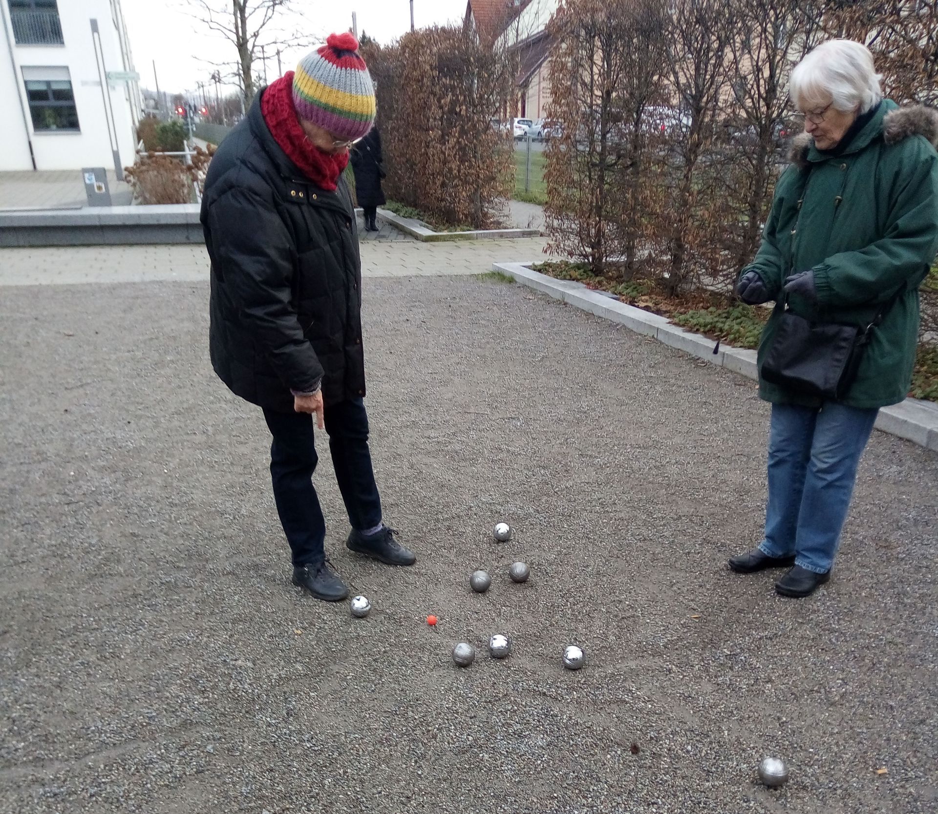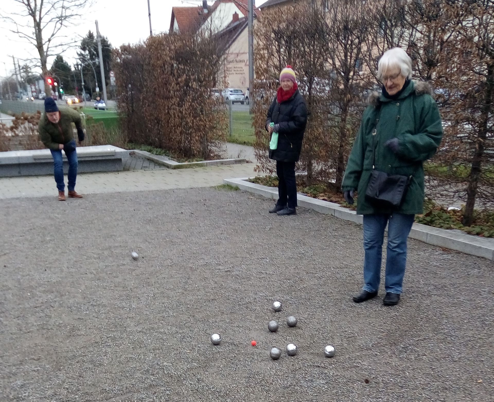 Um die Winterpause beim Minigolfspielen mit einer gemeinsamen sportlichen Aktivität zu verbringen, bei der wir uns auch im Freien treffen können, hatten einige Mitglieder des Arbeitskreises Schriesheimer Senioren (ASS) vorgeschlagen, uns zum Boulespielen zu treffen. Dafür geeignet ist die Anlage auf dem Raiffeisenplatz in der Nähe vom OEG-Bahnhof. Die Spielregeln sind relativ einfach: Zwei Mannschaften, die aus ein bis drei Spielern bestehen, treten dabei gegeneinander an. Ziel ist es, die eigenen Kugeln möglichst nahe an eine Zielkugel heran zu werfen. Bisher konnten wir uns schon mehrmals treffen, und die Mitspieler lassen sich gern in die Geheimnisse des Boulespielens einführen. So haben wir wieder eine schöne Möglichkeit gefunden, uns zu treffen und etwas gemeinsam zu machen. Oft haben wir hinterher auch noch Lust, einen heißen Kaffee im Begegnungszentrum „mittendrin“ zu trinken und uns dabei wieder aufzuwärmen. Der nächste Boule-Termin ist am Mittwoch, den 15. Februar, um 15 Uhr geplant. Natürlich ist diese Aktivität ziemlich wetterabhängig, aber wir hoffen, dass wir uns weiter regelmäßig im Zwei-Wochen-Rhythmus mittwochs treffen können.
