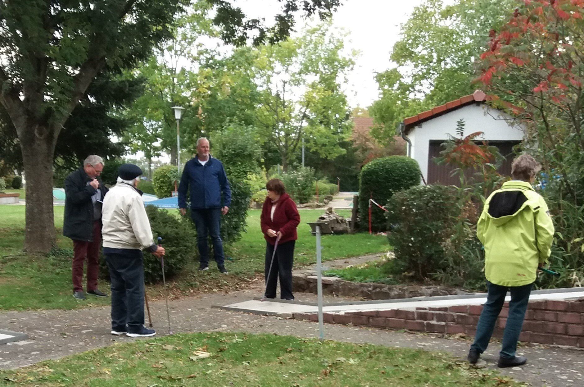 Mit dem jahreszeitbedingten Schließen der Anlage des Minigolfclubs Schriesheim (MCS) ist nun leider erst einmal eine gute Gelegenheit, sich sportlich zu betätigen, für dieses Jahr zu Ende gegangen. Viele Mitglieder des Arbeitskreises Schriesheimer Senioren (ASS) hatten sich dort gerne zum Minigolf-Spielen getroffen. Dabei war nicht nur wichtig, sich dabei leicht sportlich zu betätigen und damit auch seiner Gesundheit etwas Gutes zu tun, sondern vor allem war es ein Anlass, mal wieder miteinander etwas zu unternehmen, zu diskutieren, neue Vorhaben zu besprechen und sogar nach dem Spiel noch gemütlich zusammenzusitzen. Außerdem konnten wir feststellen, dass es sich tatsächlich bemerkbar machte, dass wir uns jetzt schon das 2. Jahr regelmäßig zum Minigolf-Spielen getroffen haben und dadurch schon etwas zielsicherer spielen konnten als bisher. So gab es deutlich weniger Fehlversuche beim Einlochen der Minigolfbälle und damit natürlich bessere Ergebnisse am Spielende. Da wir immer mit viel Freude dabei waren, hoffen wir nun, dass wir uns in der nächsten Saison wieder zum Spielen beim MCS treffen können.