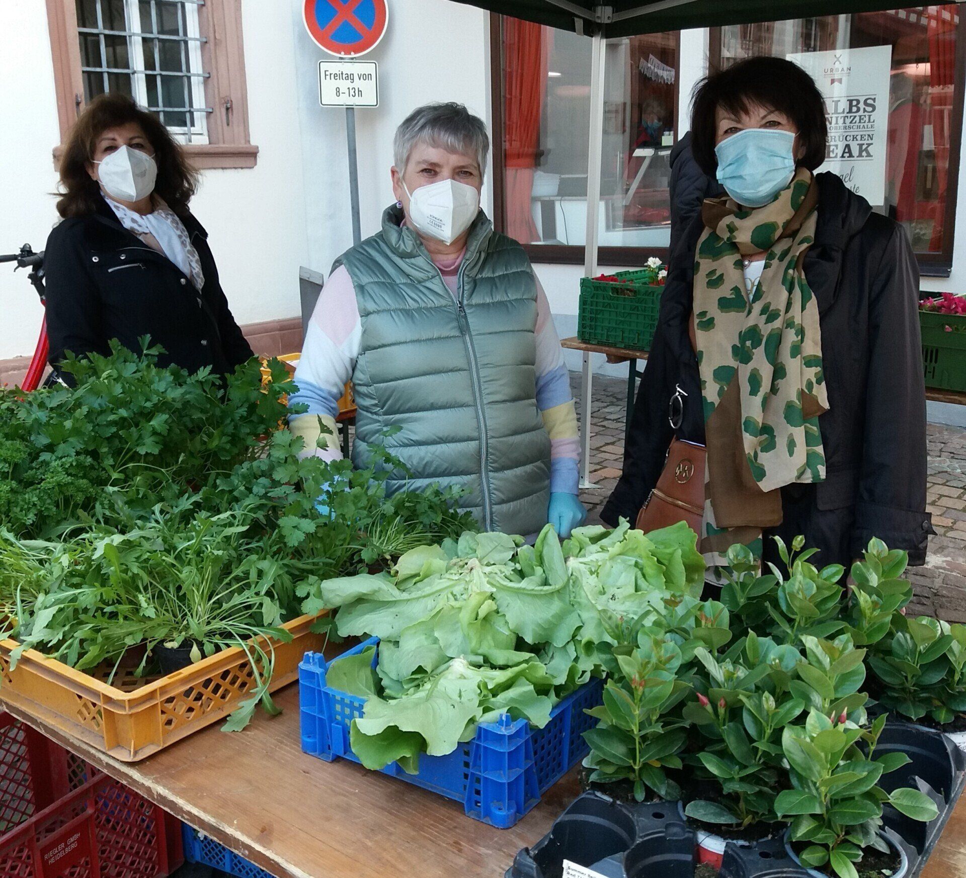 Bei etwas unterkühltem Frühlingswetter startete jetzt der diesjährige Marktstand vom Talhof am Alten Rathaus in Schriesheim mit dem Verkauf seiner Produkte, die in der eigenen Gärtnerei gewachsen sind. Wie im vorigen Jahr mussten die als Verkäuferinnen tätigen Mitglieder vom Arbeitskreis Schriesheimer Senioren (ASS) zwar wieder einen Mund-Nasenschutz tragen, aber sie waren froh, dass sie endlich wieder ehrenamtlich aktiv sein können. Ebenso freuten sich die Käuferinnen und Käufer über das vielfältige Angebot an blühenden Pflanzen für Balkon und Garten, darunter mehrere Geranien-Sorten, Petunien und Lobelien. Auch die verschiedenen Kräuter sowie die Salate fanden regen Absatz. Bedingt durch die frühe Jahreszeit fehlte zwar noch das sonst reichhaltige Gemüsesortiment, aber das wird sicher auch bald zum Angebot gehören. Geplant ist, dass der Talhof wohl wieder bis zum Oktober seinen Marktstand am Alten Rathaus aufbauen wird.